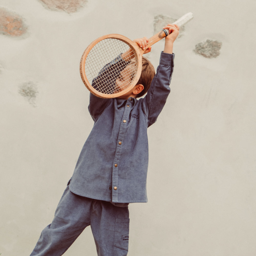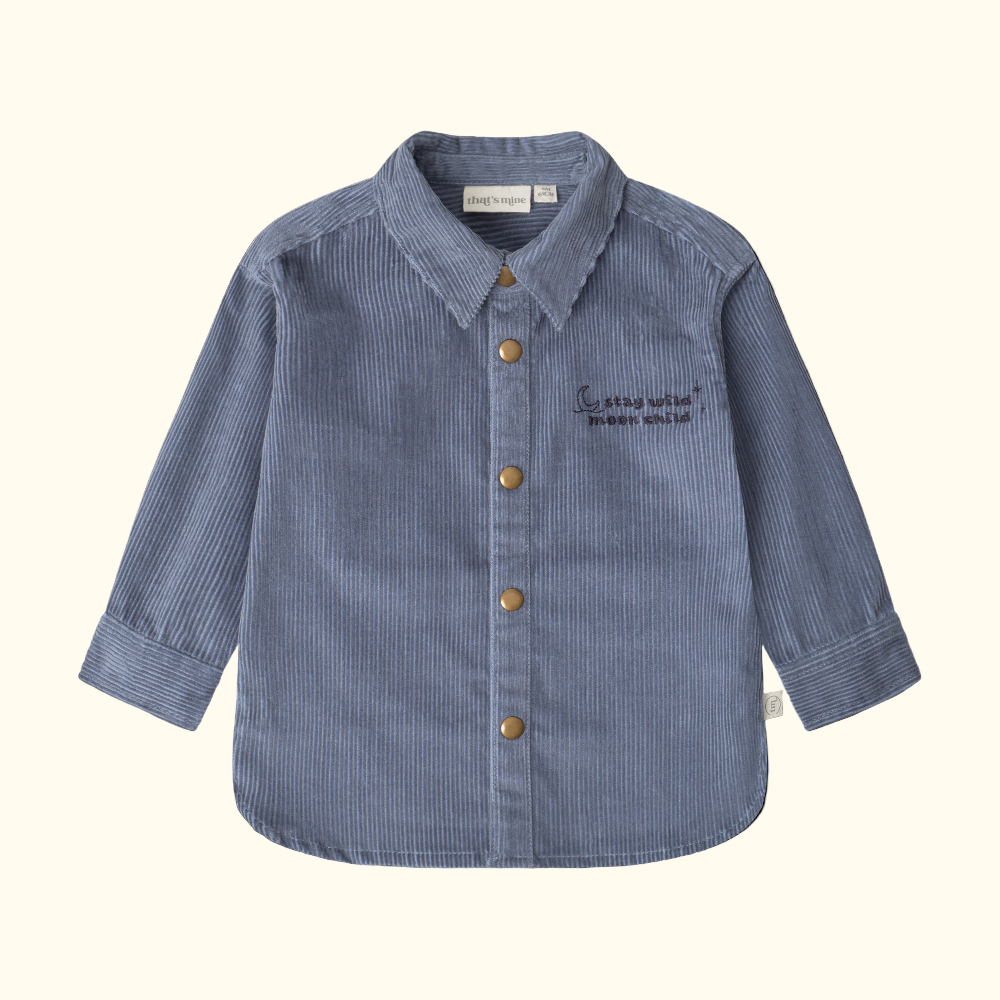 Këmisha Frode vjen në ngjyrë blu për të vegjlit tuaj. E përbërë 100% nga pambuku organik, ofron butësi, stil dhe ngrohtësi maksimale për lëkurën.