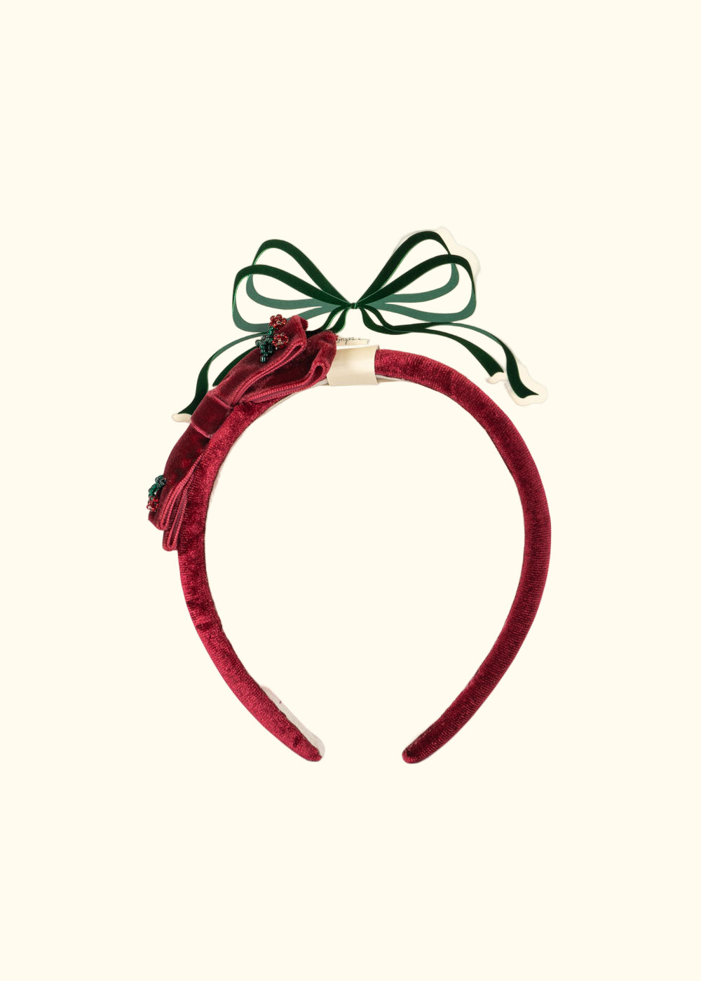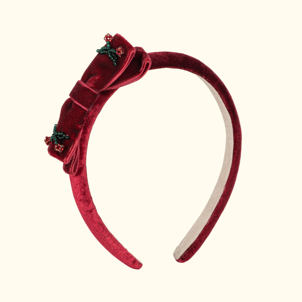 Rrethi i flokëve Juliette, material velvet i kuq, perfekt për festat e fundvitit.